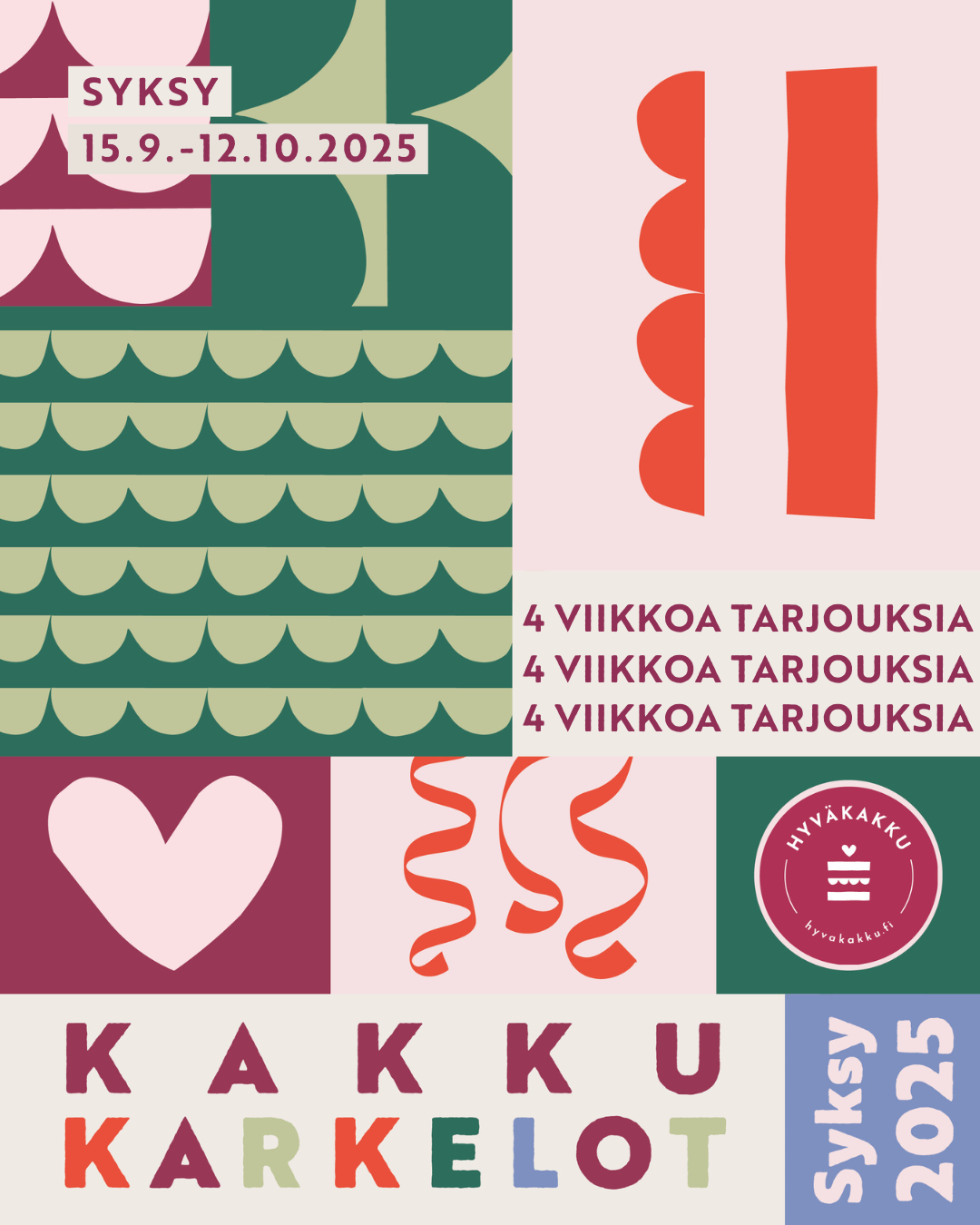 Hyväkakun Kakkukarkelot 15.9–12.10.2025.