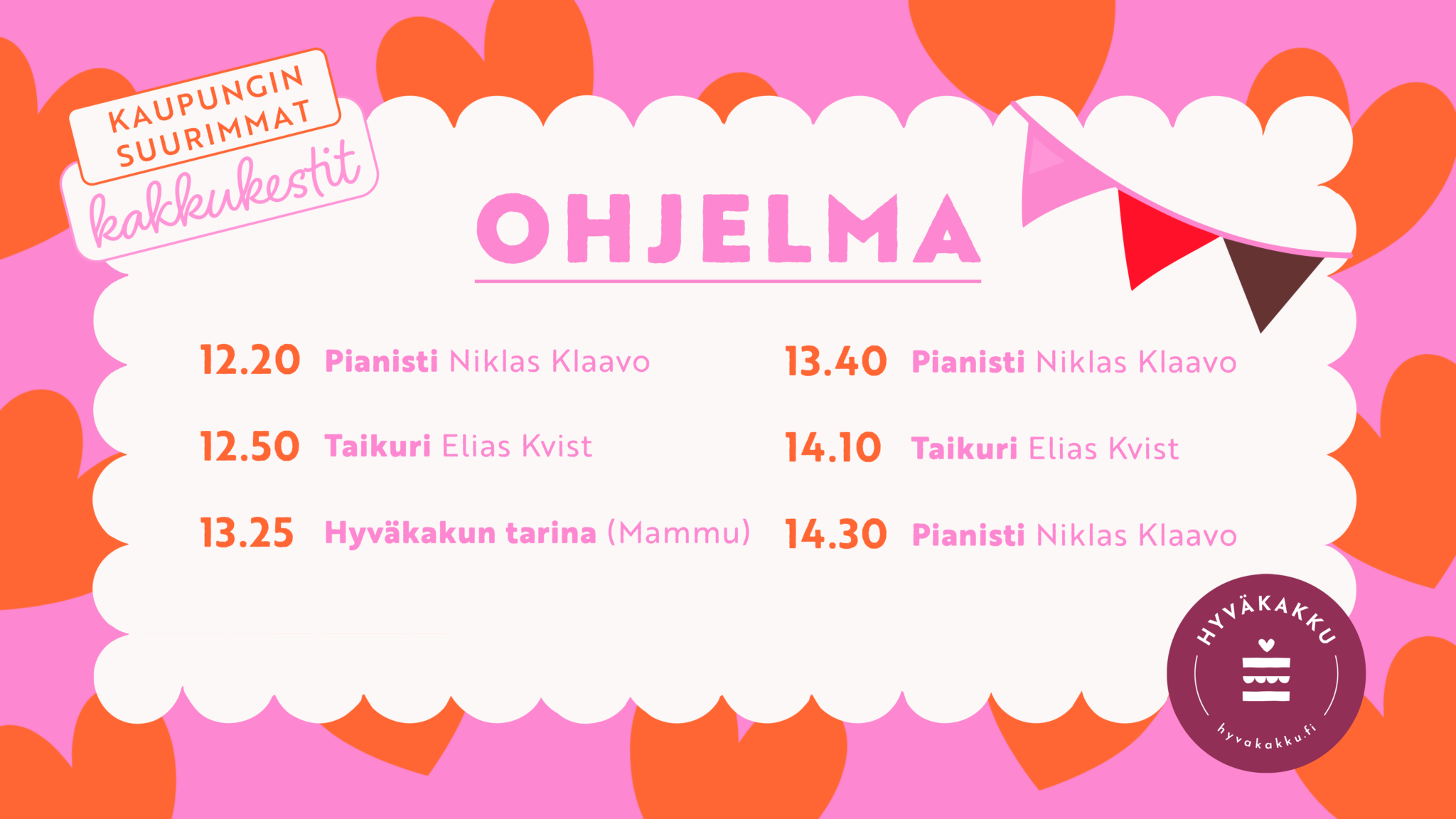 Ohjelmassa elävää musiikkia, taikuri Elias Kvist sekä Hyväkakun tarina.