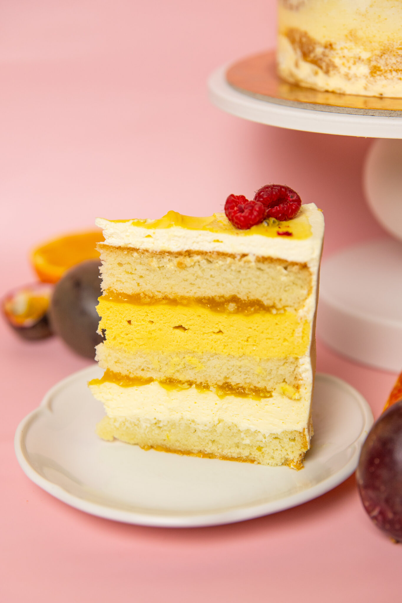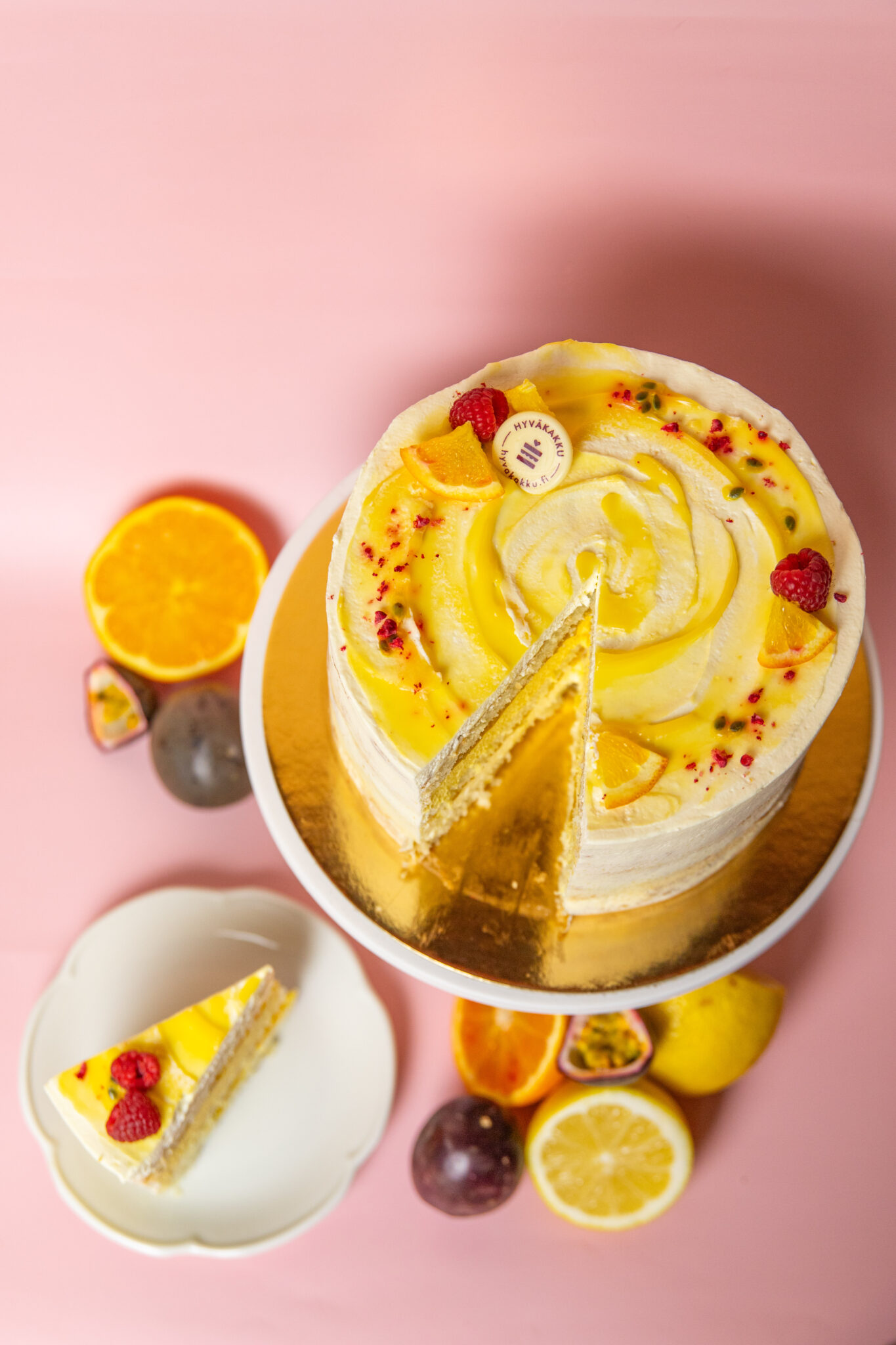 Sokerikakkupohjien sisältä löytyy pehmeä mangopassionmousse, täyteläinen vaniljamousse ja leipomon omaa raikasta passiontahnaa. Päällä sipaisu kermavaahtoa ja keväisen raikas koristelu.